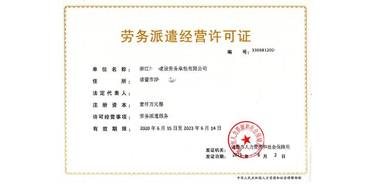 勞務(wù)派遣許可證案例以及經(jīng)營范圍分享:注冊資金1000萬元整,許可證有效期3年。經(jīng)營范圍:承接施工總承包和專業(yè)承包,建筑工程勞務(wù)分包;勞務(wù)派遣;人力搬運(yùn)裝卸服務(wù);綠化服務(wù);餐飲管理服務(wù);保潔服務(wù);投資咨詢服務(wù);房屋出租